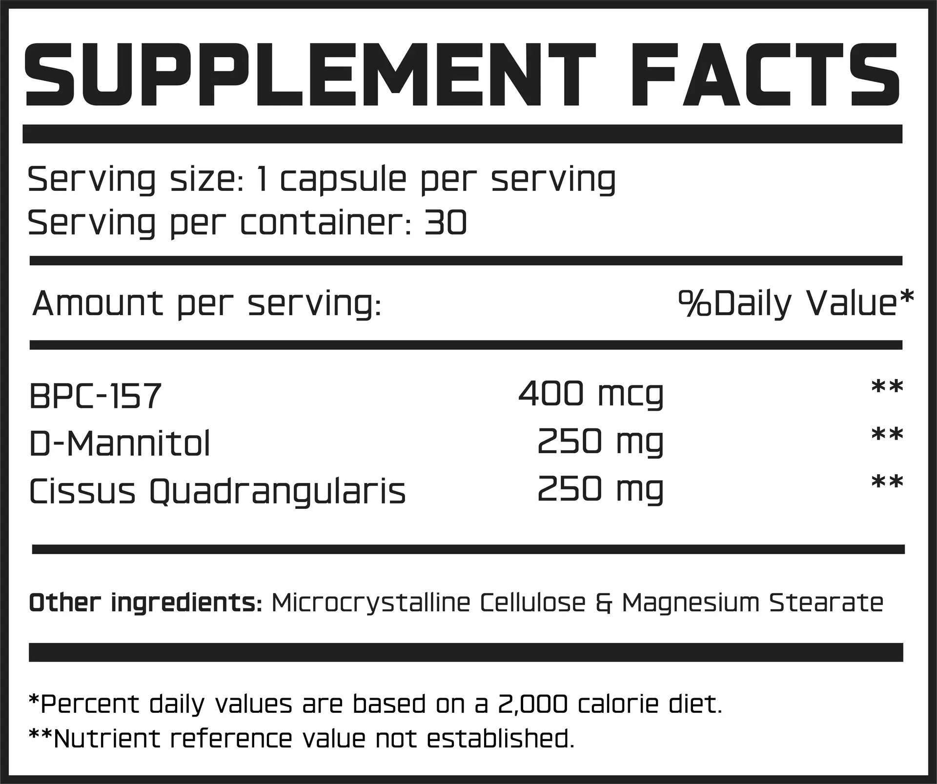 - Dosage: Take 2 capsules daily with water.